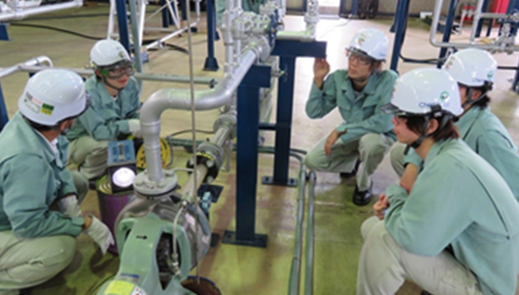 入社時研修、本採用研修、フォローアップ研修を通じて学生から社会人への意識変革、当社の概要理解、一人前の意味、装置運転定員へ向けてすべきこと等を主にグループワークを通じて考え議論し、意識面でのレベルアップを図ります。